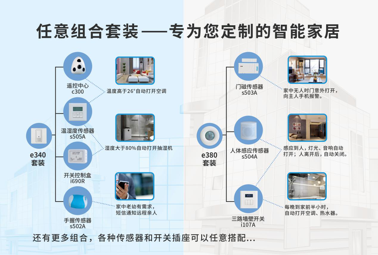 ·与烟雾传感器、温湿度传感器、门窗传感器手握传感器等联网,可组建远程报警系统和智能家居系统。