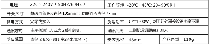 9、负载类型及功率:可支持各类负载。线控负载功率最大1200W,红外遥控设备功率不限。