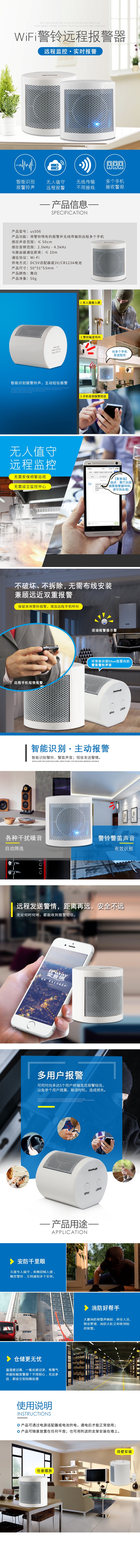 us506在无人值守环境出现警笛、警铃等报警声时,能自动向远程多个智能手机发送报警信息。该产品内置WiFi模组,无需任何网关等传输器件,用户即可及时掌握远程无人值守的场所,是否出现危情,触发了警铃、警笛等报警装置,并据此开启相应的安防监控报警设备。该产品是远程智能报警系统中简单、方便、安全、高性价比的创新产品。